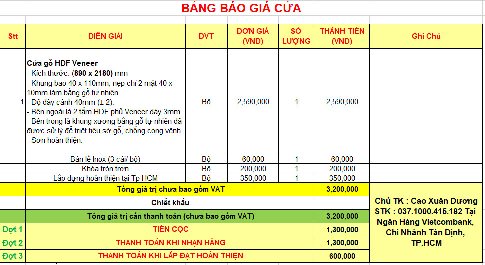 Chính sách mua hàng nhận báo giá và thanh toán Báo giá cửa gỗ HDF Venner