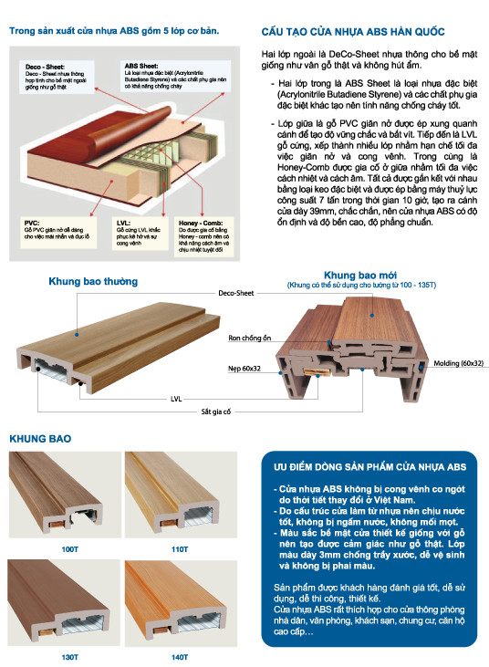 Là dòng cửa nhựa giả gỗ , sản phẩm được làm từ tấm nhựa ABS có tên khoa học là Acrylonitrile có xuất xứ từ Hàn Quốc.