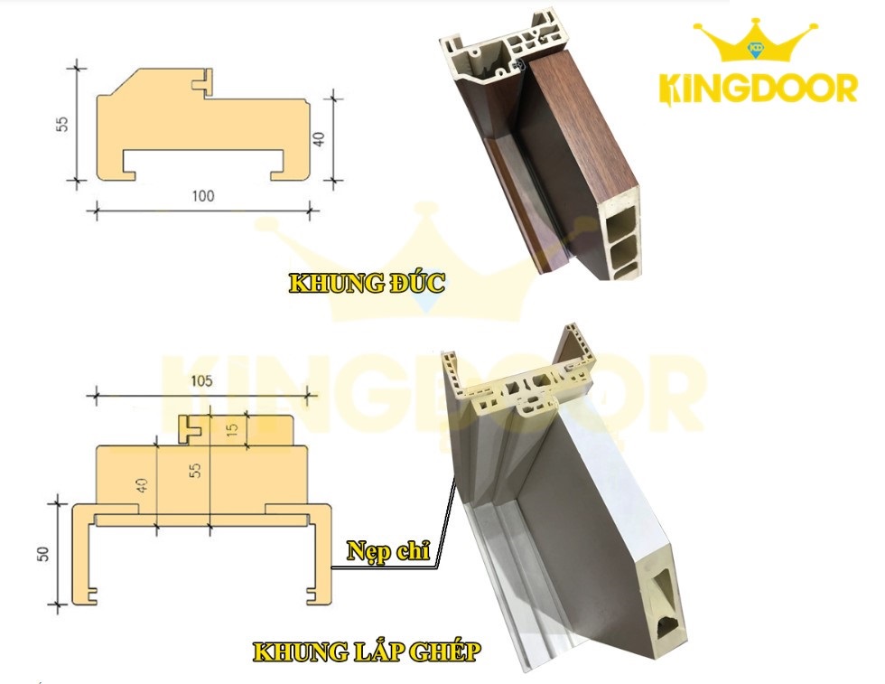 – Hệ khung tăng giảm: có 2 hệ khung 45mm x 90mm / 55mm x 105mm / 45mm x 120mm / 55mm x 200mm